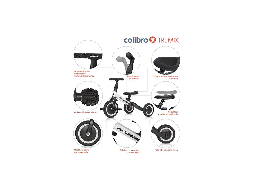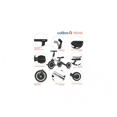 TREMIX je detský bicykel 4 v 1. Vďaka mimoriadne jednoduchému patentovanému systému zmeny funkcií bicykla je TREMIX použiteľný 4 rôznymi spôsobmi a je určený pre deti od 1 do 5 rokov. Vďaka tomuto inovatívnemu riešeniu rastie bicykel s dieťaťom.