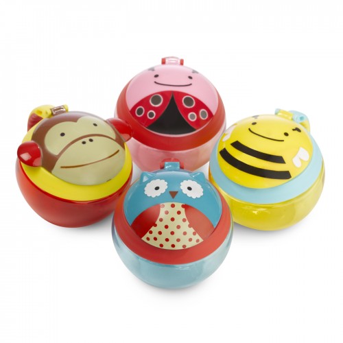 Šikovný nápad na cesty. Nádoba má viečko, ktoré po otvorení drží, pred vysypaním obsahu ho chránia pružné lamely, ktoré pustia detskú ručičku dovnútra, ale nepustia desiatu von. Nádoba je priehľadná, aby sa mohla zavčasu doplniť. Na boku je praktické uško v detskom rozmere, pomocou ktorého možno nádobu pripevniť aj na kočík či tašku. 0% BPA, 0% PVC, bez ftalátov. Obsah: 222 ml. Priemer: 10 cm