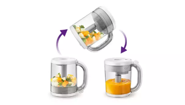 Varič detskej stravy 4 v 1 vám umožňuje pripravovať výživné domáce jedlá v jedinom pohári. Tieto jedlá môžete okamžite podávať alebo ich môžete uložiť v dodanej nádobe a neskôr ich prihriať pomocou jednoduchých funkcií prihrievania alebo rozmrazovania.