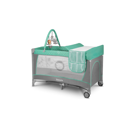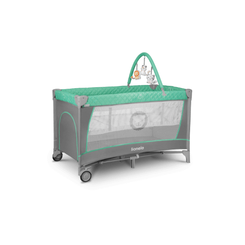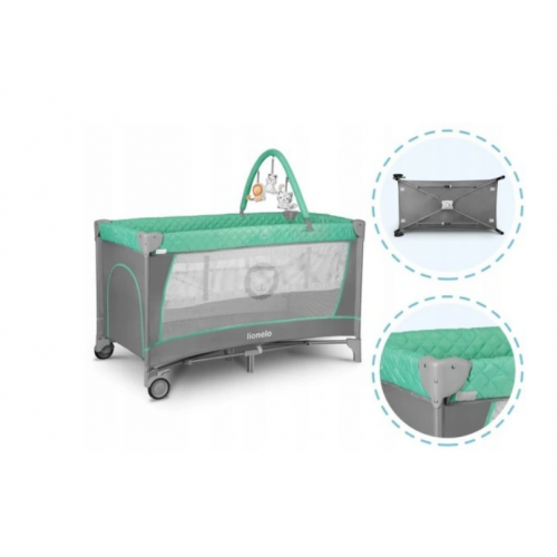 Cestovná postieľka Flower Turquise LIONELO + interaktívna hrazdička